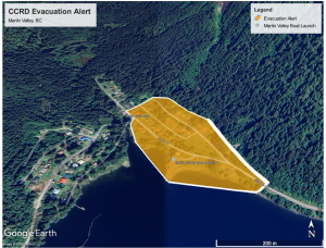 This Evacuation Alert is issued by Central Coast Regional District due to current flooding and potential landslide risk from Mt. Caro Marion above the village of Martin Valley.
